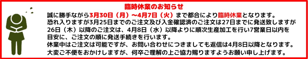2026年3月30日(月)~4月7日(火)臨時休業