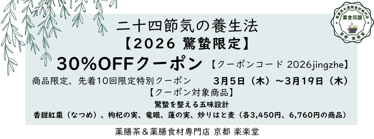 京都 楽楽堂では、驚蟄の養生に寄り添う品々をご紹介しています。