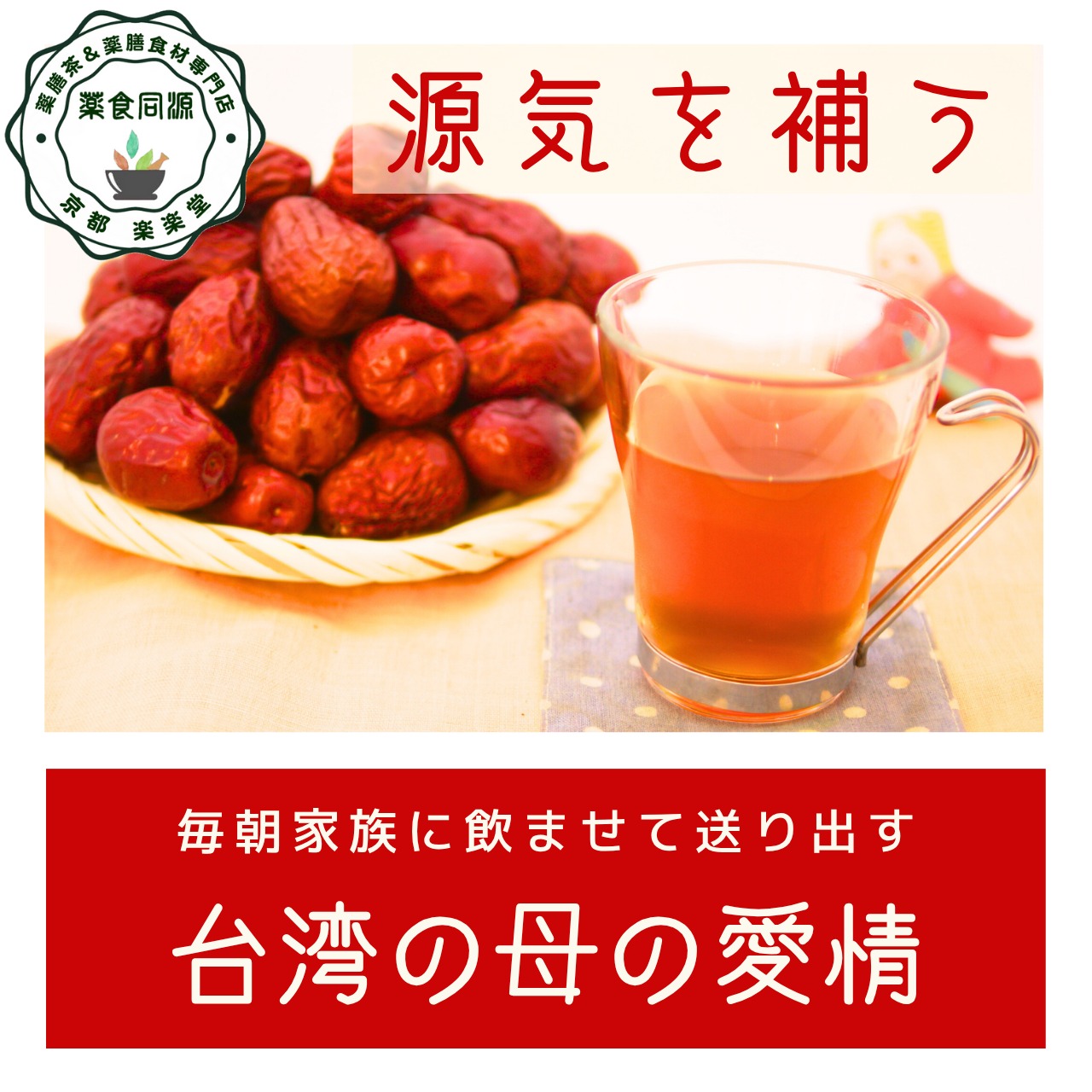 なつめ(新疆産香甜紅棗)、枸杞の実(寧夏産オーガニック)、竜眼(福建省産化学農薬不使用)