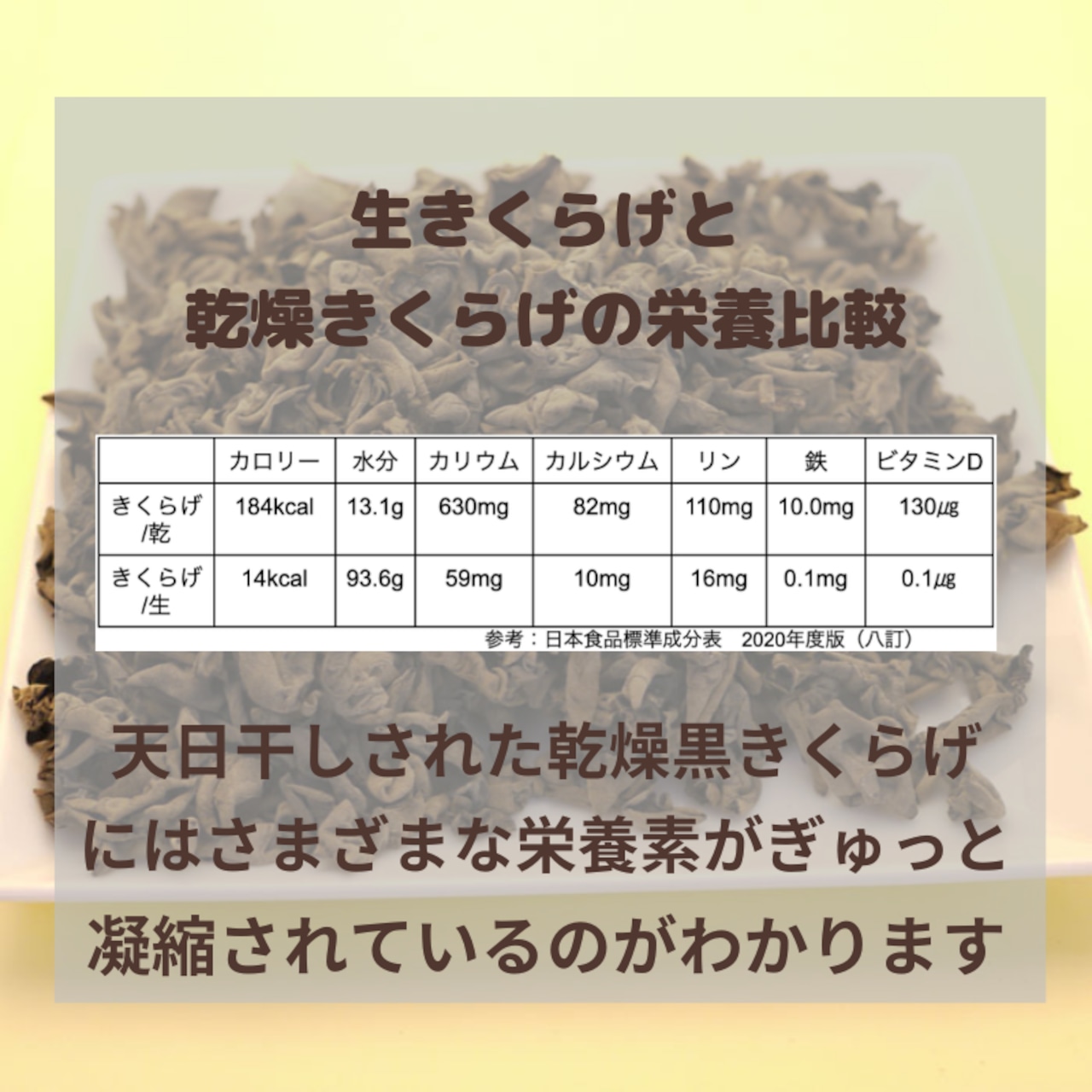 ※乾燥状態から戻すと約8〜10倍に増えます