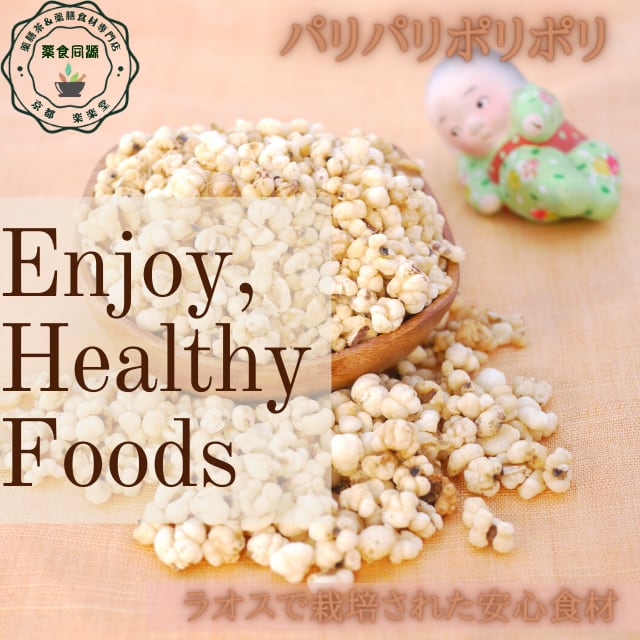 ラオス産の無農薬はと麦を皮をむいて炒り上げました。ラオスっていうとあまり聞きなれない国ですが、ベトナムとタイに挟まれた海に接しない内陸国で、タイとの国境をメコン川が流れ水資源が豊富で稲作を中心とした農作物がとても重要な産業だそうです。近年のラオス政府では、食品の安全性を向上させるために、化学肥料や農薬の使用が少ないラオスの農業の強みを活かしたクリーン農業を推進しており、 原始的な農耕法で農作物の栽培に農薬や化学肥料は使わず安全・安心な農作物が作られています。