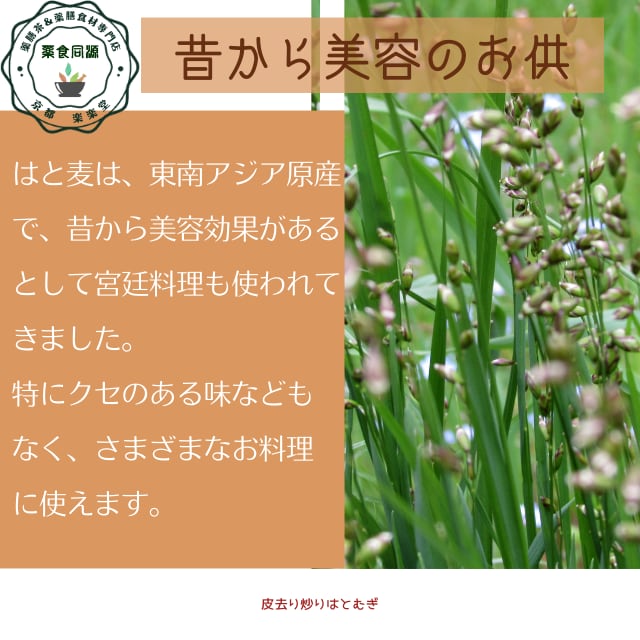 はと麦の原産地は、もともとこの辺りではないかと推定されており、これが中国に伝わり古くから食料として栽培され、また昔から美容効果があることが知られていて宮廷料理として使われてきました。