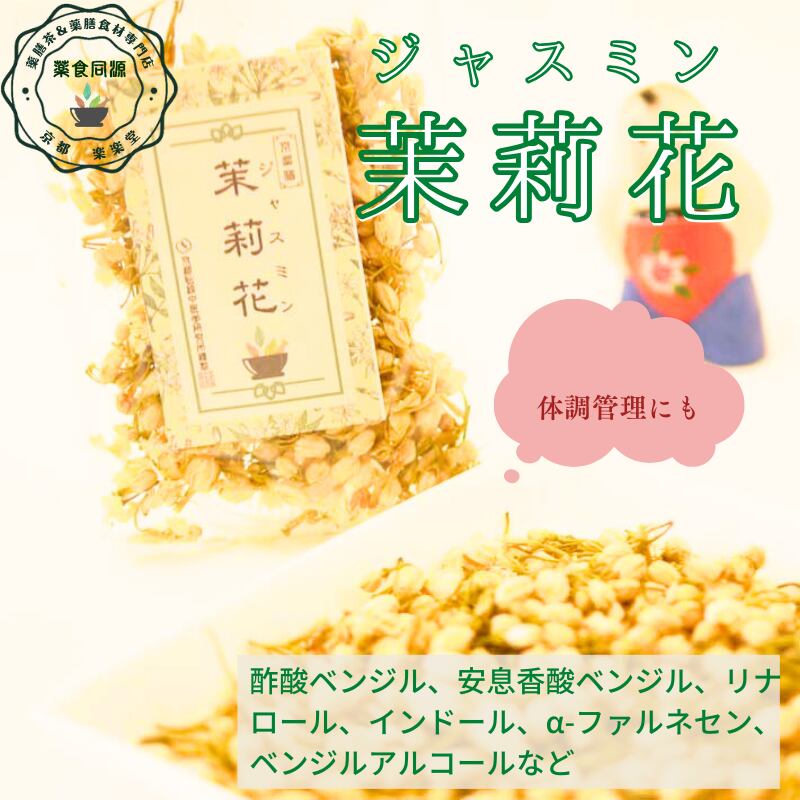 中医学では「疏肝理気(そかんりき)」の効能があり、ストレスによる気滞や胃腸の不調、冷え、湿気による重だるさに用いられます。香りの成分ベンゼルアセテートがリラックスを促し、集中力の向上やホルモンバランスの調整にも期待が持てる薬膳素材です。