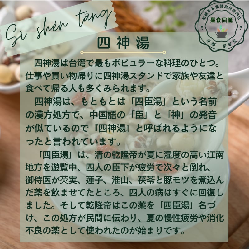 台湾では夏の定番スープとして親しまれている「四神湯(ししんとう)」。