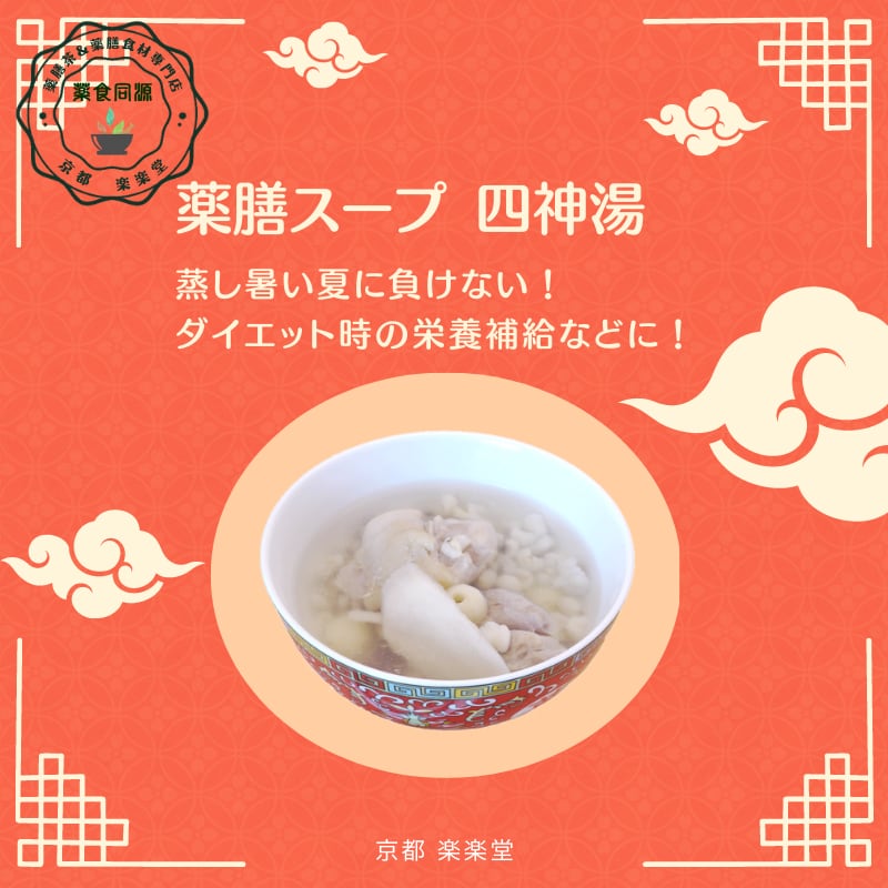 四神湯は、脾腎を補い、湿気と暑さにより消耗しがちな夏の身体を内側から立て直す薬膳スープとして、今でも多くの人々に親しまれています。夏バテや食欲不振、暑気あたりの予防・改善に最適とされ、夏の養生にふさわしい薬膳スープです。