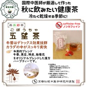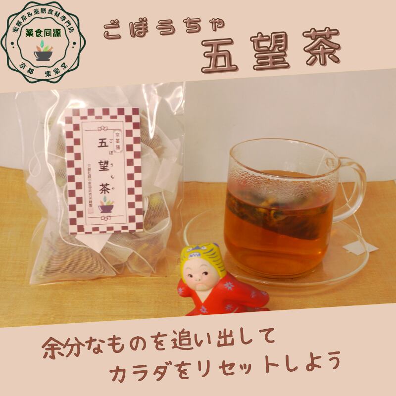 「五望茶」は、更年期以降の女性に多い高脂血症やコレステロールの上昇が気になり始めた方に向けて開発された、体を内側から整えるノンカフェインの薬膳茶です。