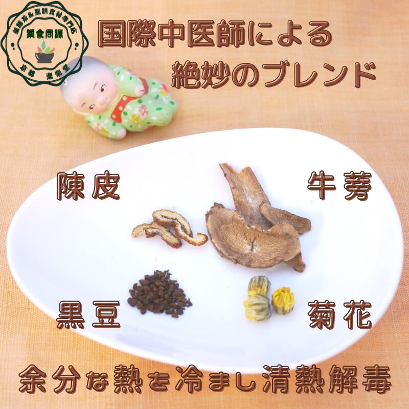 寒涼性のごぼうと菊花に、温性の黒豆・陳皮を組み合わせた絶妙なブレンド。
