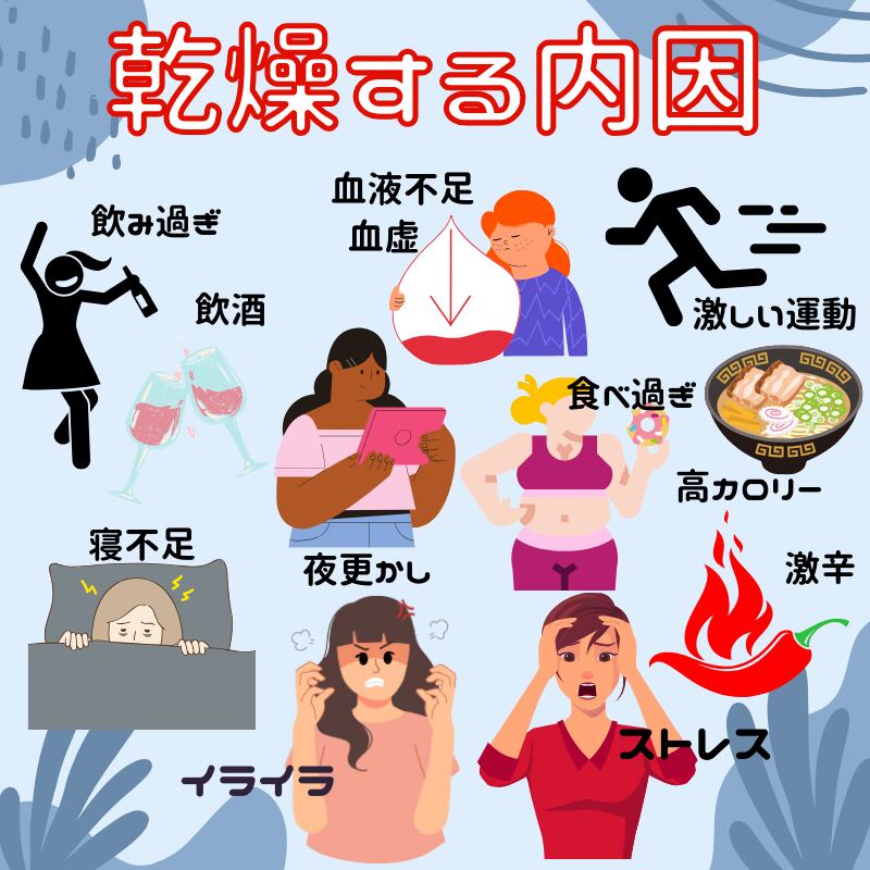 ●陰虚タイプ(のぼせ・乾燥・ほてり・寝つきの悪さ)