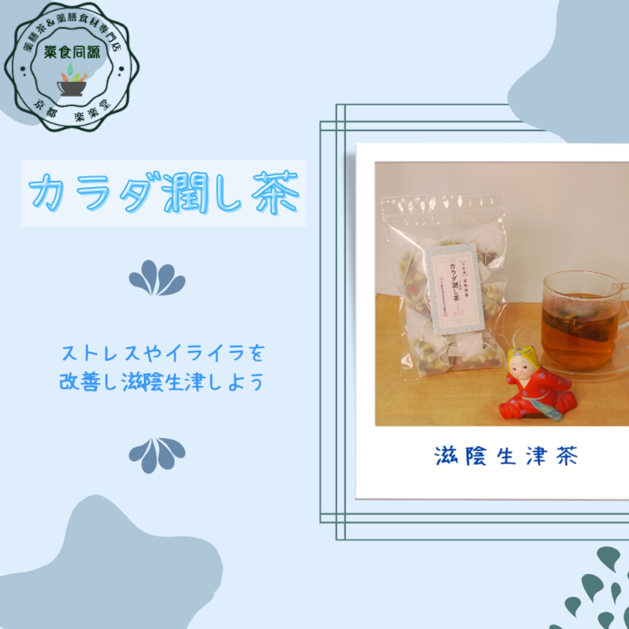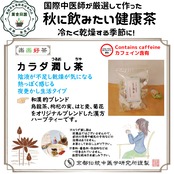 「カラダ潤し茶」は、秋の乾燥した空気から肺を守り、肌や髪の潤いを内側から補うためにブレンドされた薬膳茶です。