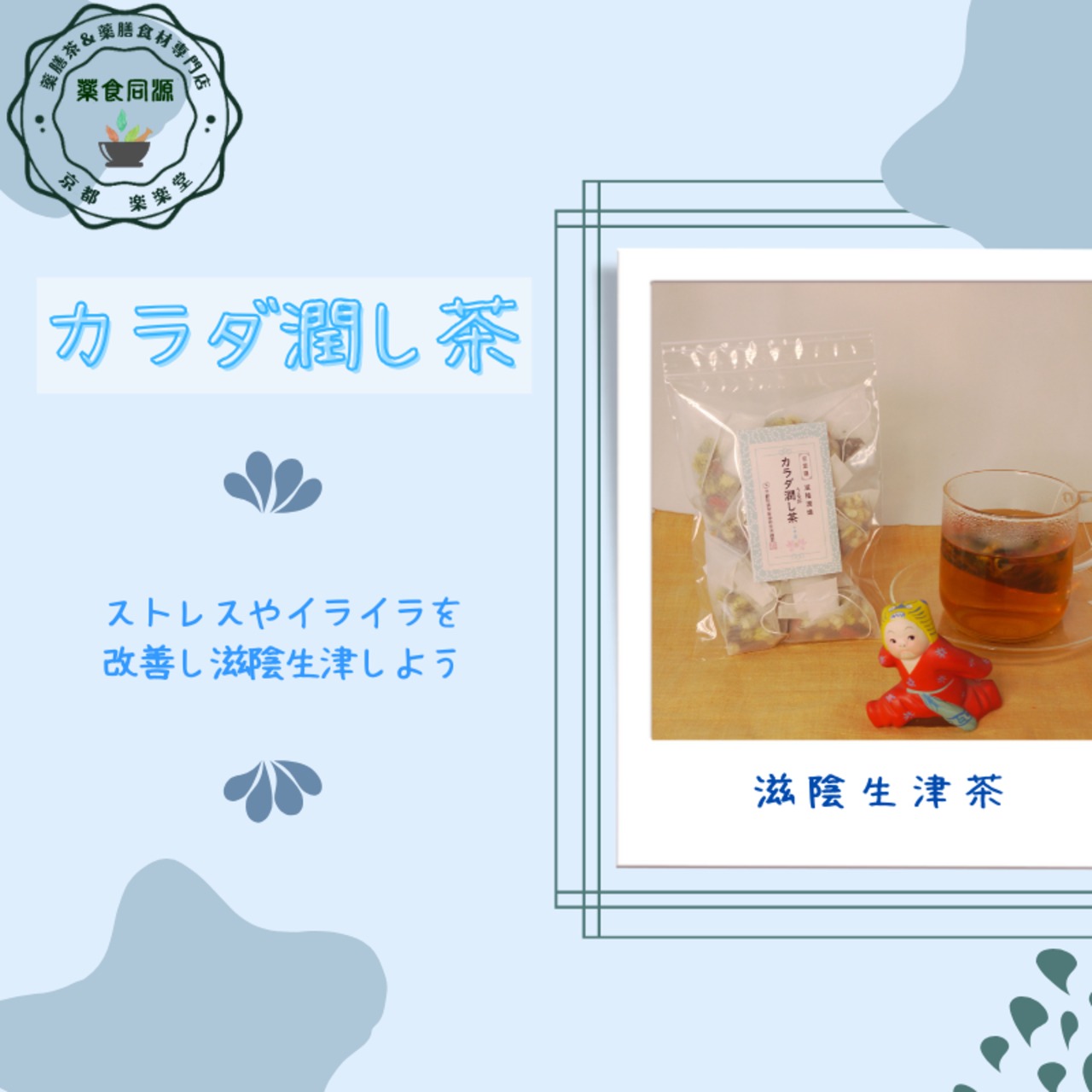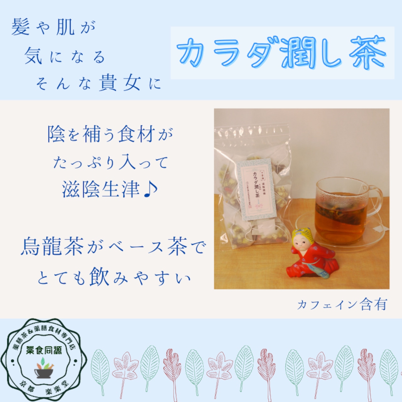 「カラダ潤し茶」は、秋の乾燥した空気から肺を守り、肌や髪の潤いを内側から補うためにブレンドされた薬膳茶です。