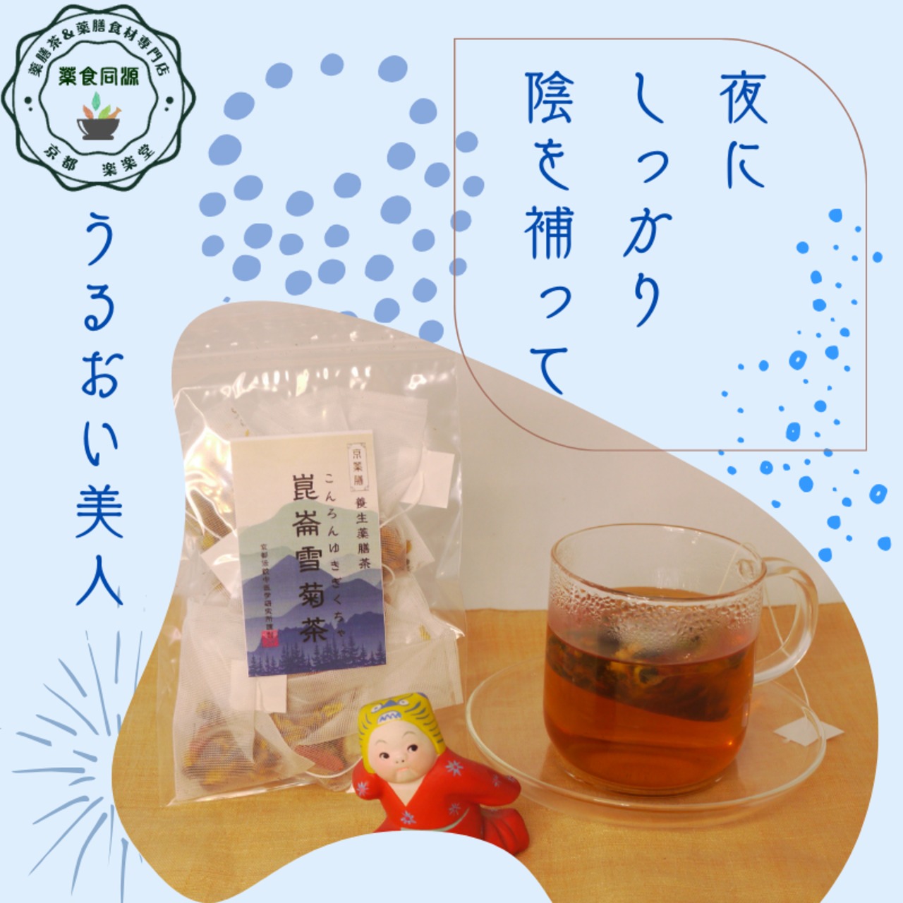 中医学で“陰”を補う「滋陰潤燥」の考え方をベースに、鉄観音烏龍茶、枸杞の実、はとむぎ、菊花を厳選配合。