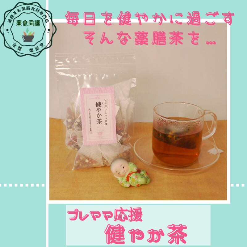 妊活中、妊娠中、授乳中の女性におすすめしたい「プレママ応援 健やか茶」。身体にやさしい素材を厳選し、なつめ・黒豆・枸杞の実・生姜・陳皮をバランスよくブレンドしました。