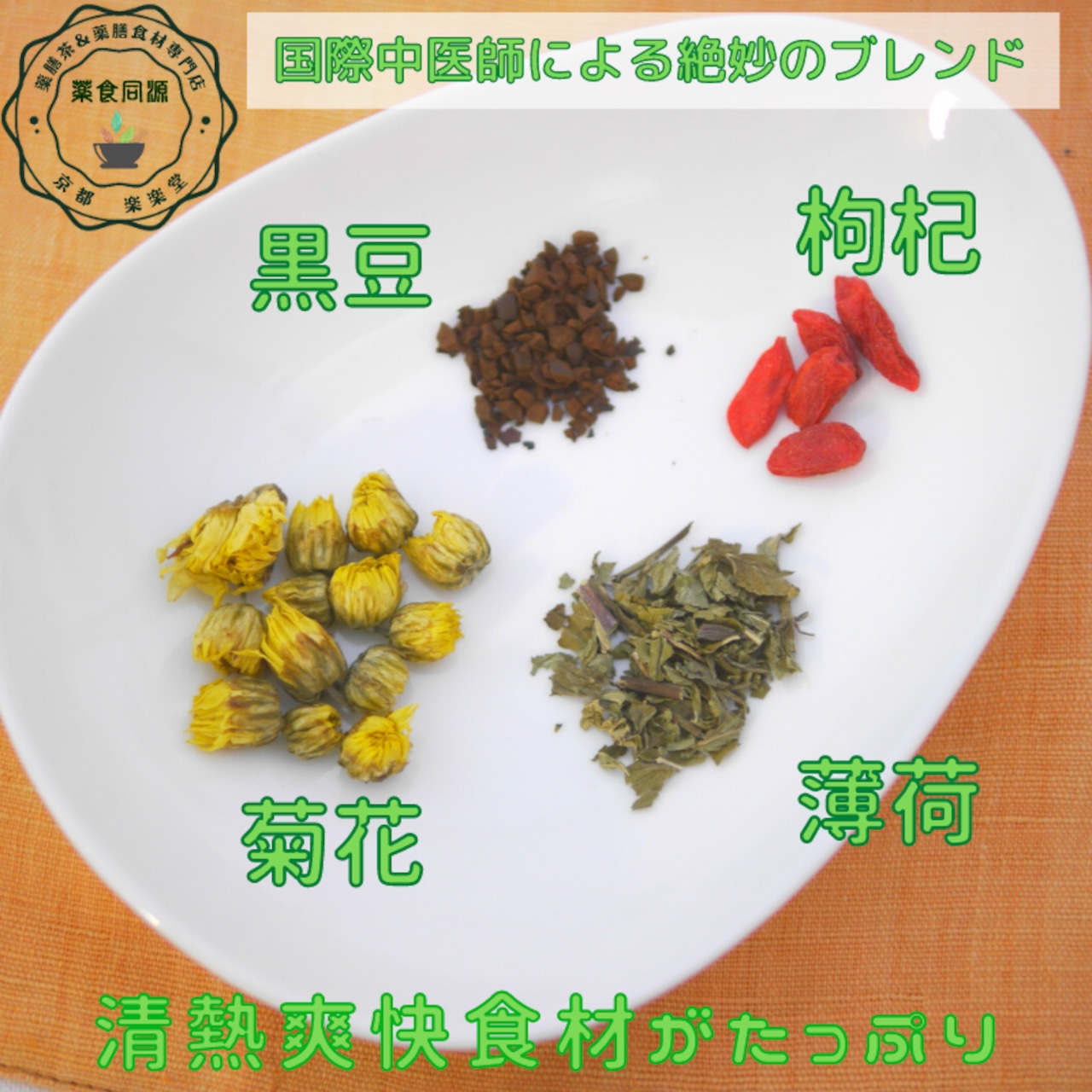 黒豆茶、菊花、枸杞の実、ミント