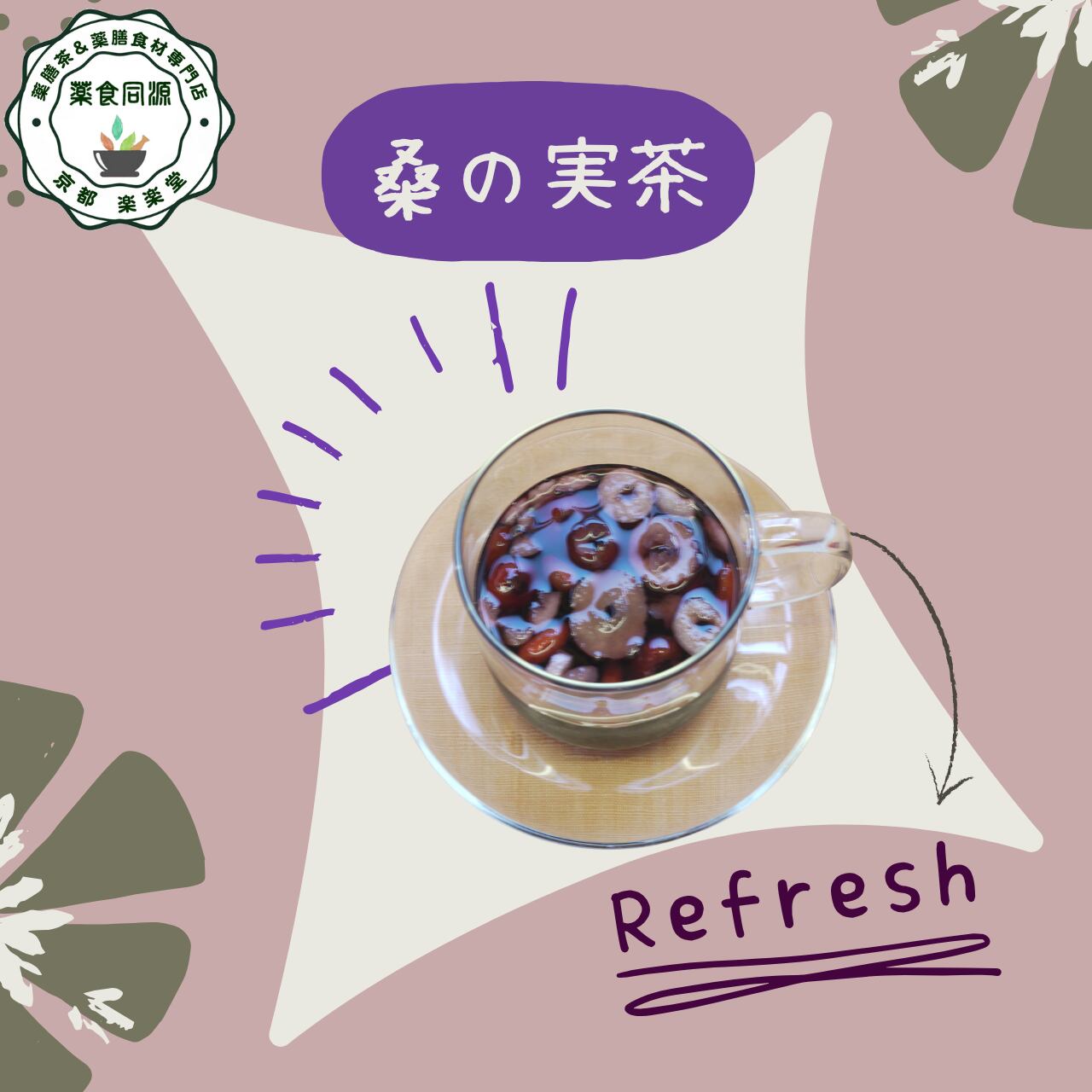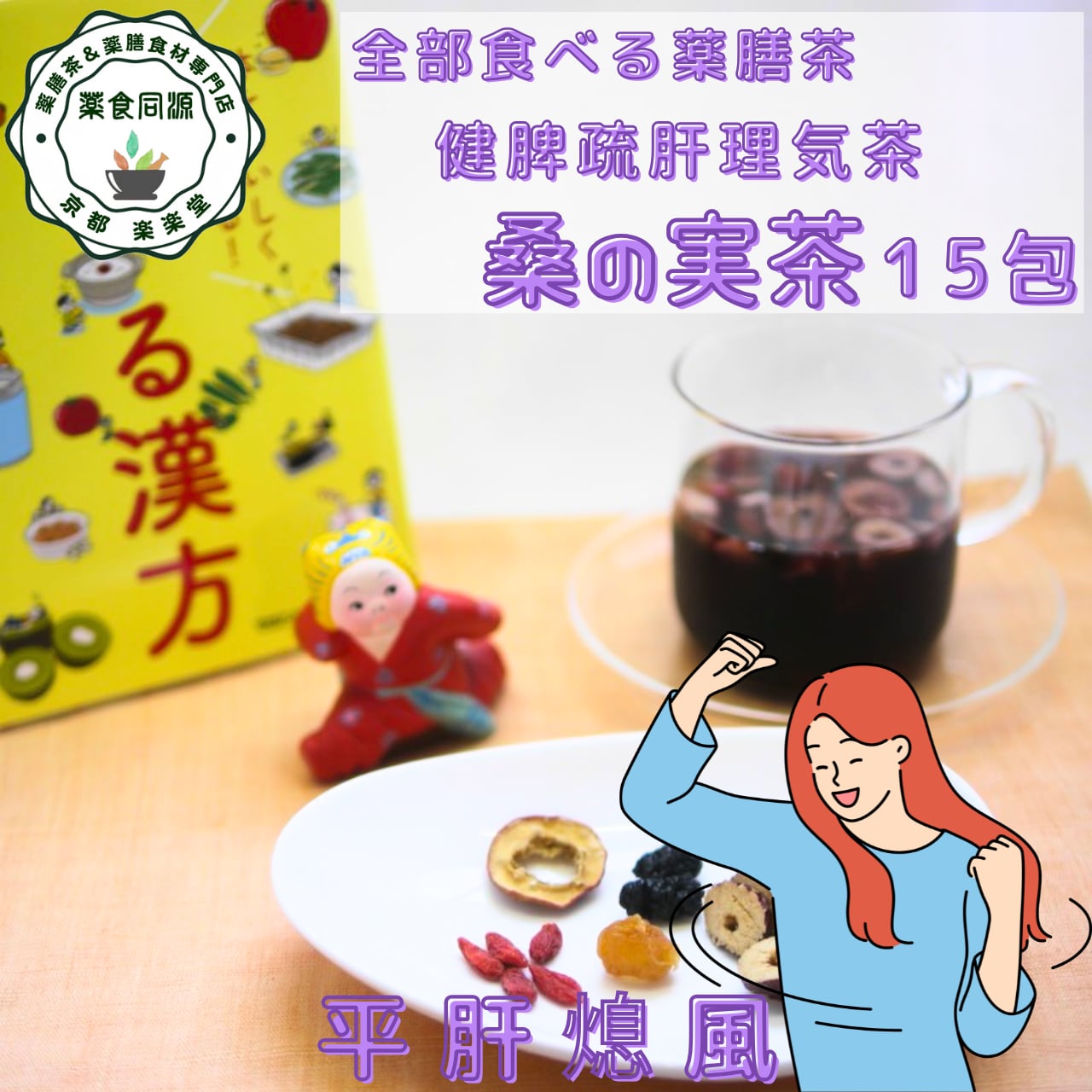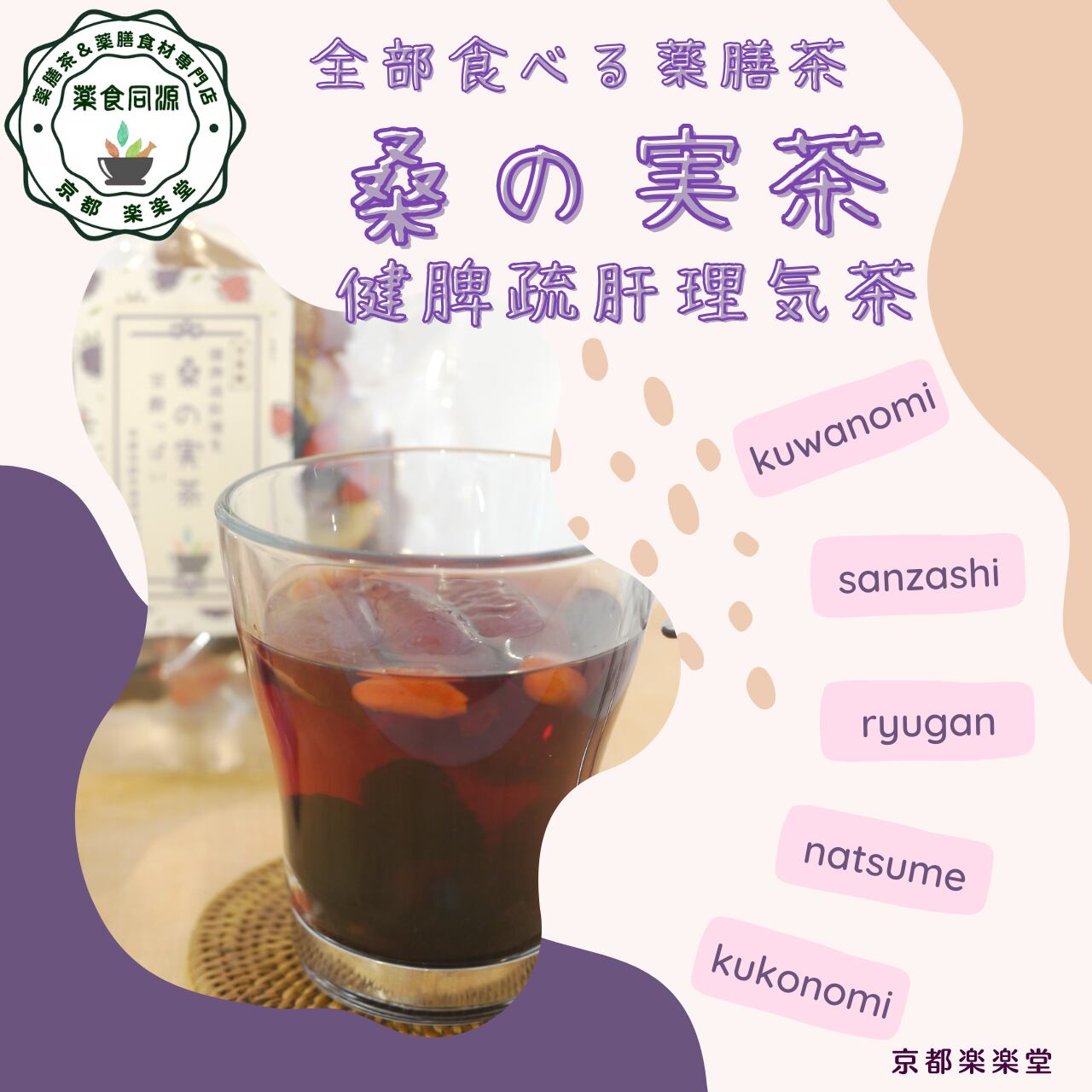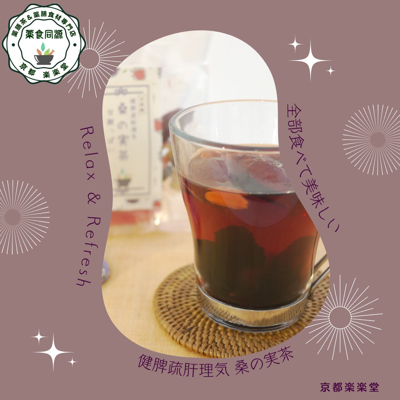 「桑の実茶(くわのみちゃ)」は、桑の実・枸杞の実・なつめ・山査子・竜眼をたっぷりブレンドした、肝と脾の調和を整える養生茶。