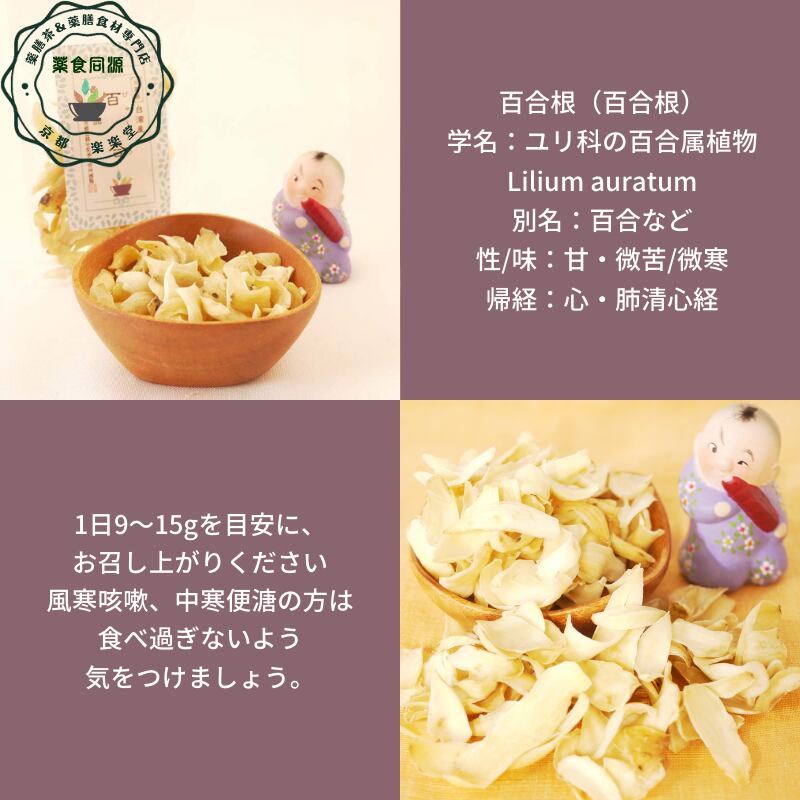 ・乾燥したゆり根を水で戻してから、スープやお粥、煮込み料理に使用します
