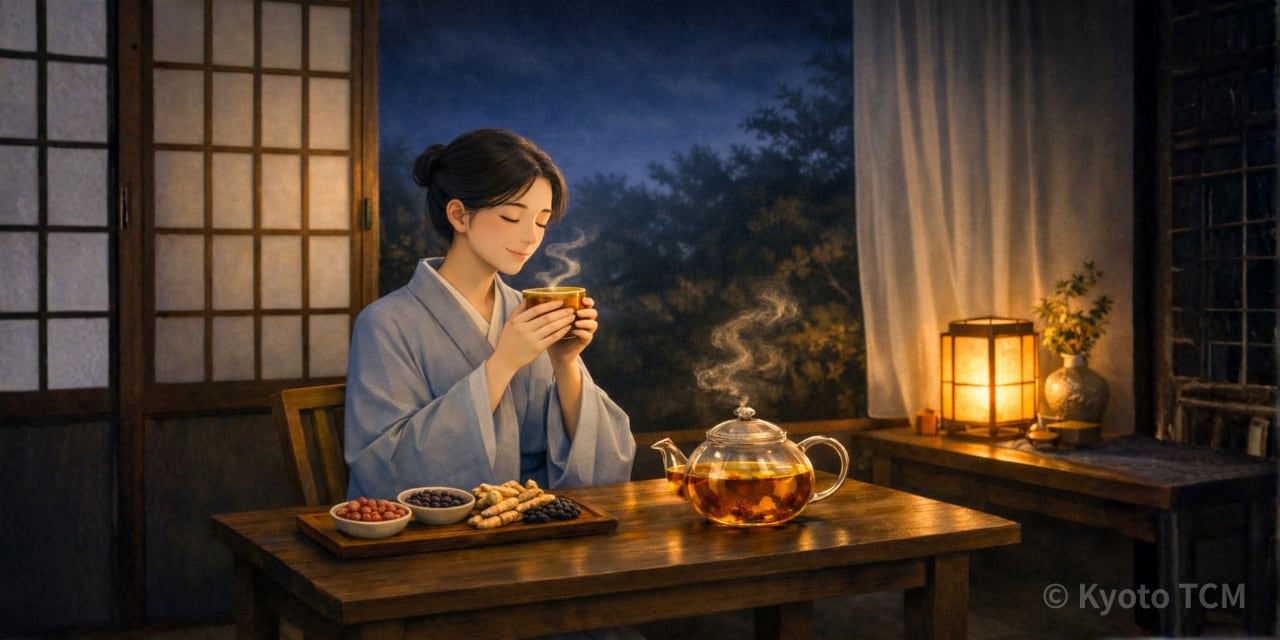 夜に温かい薬膳茶をゆっくり飲むことも、神を安らかにする助けになります。